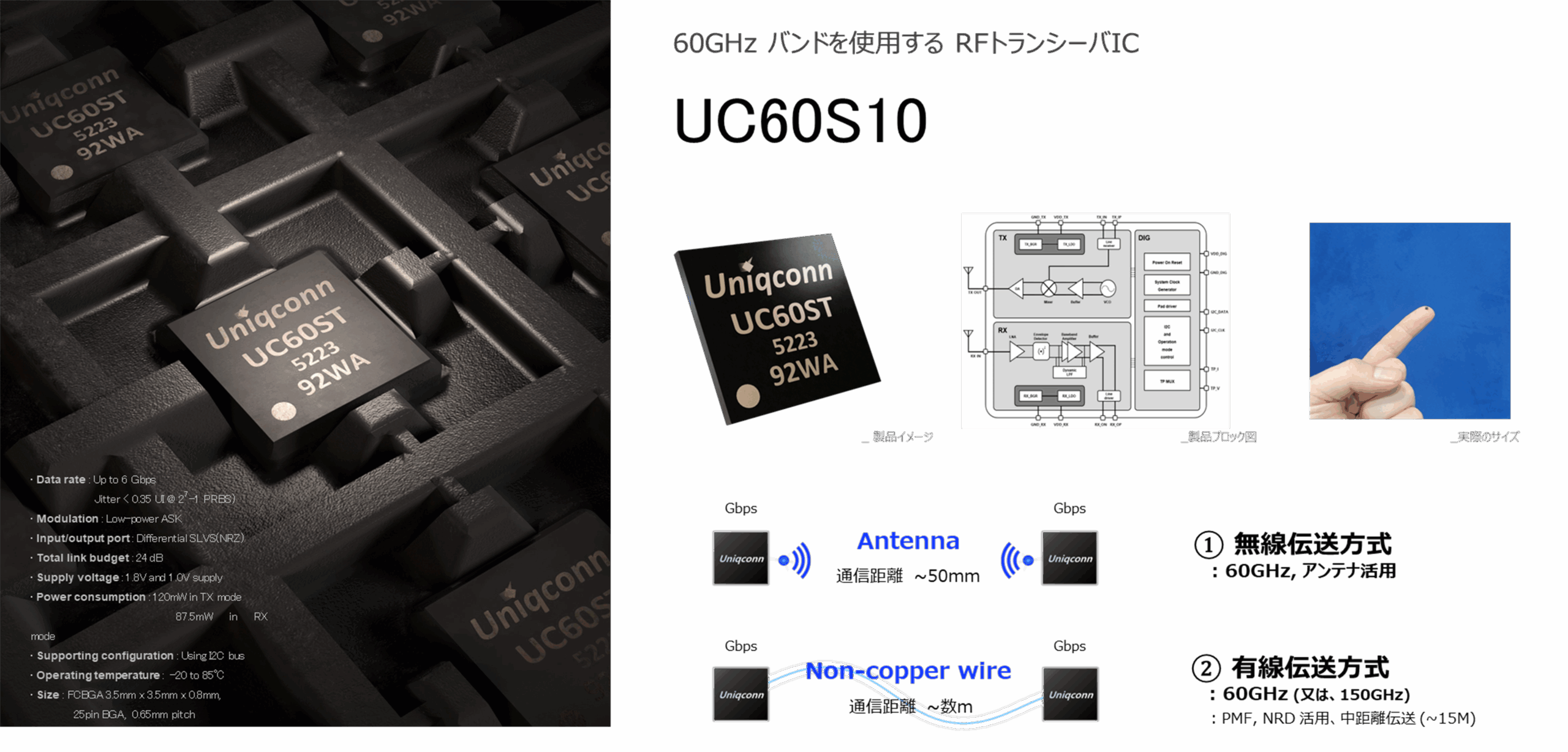Millimeter-wave short-range wireless device enables high-speed wireless transmission of large amounts of data!